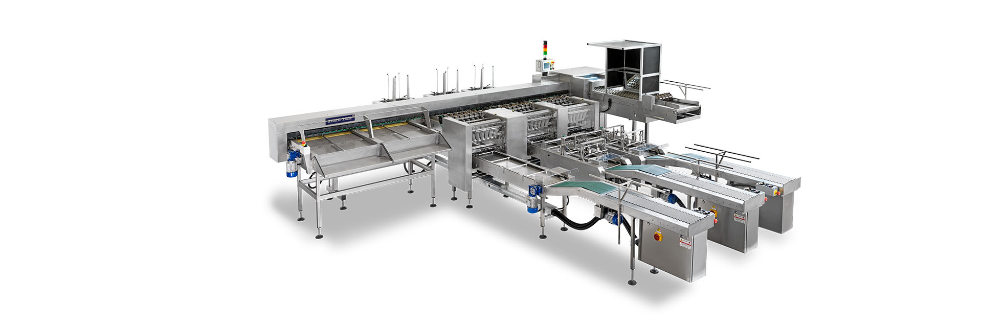 Vega Plus es la clasificadora modular de capacidad media de SIME-TEK (Italia), diseñada para automatizar el proceso de clasificación y empaque en plantas de producción de 16.000 a 20.000 huevos por hora.